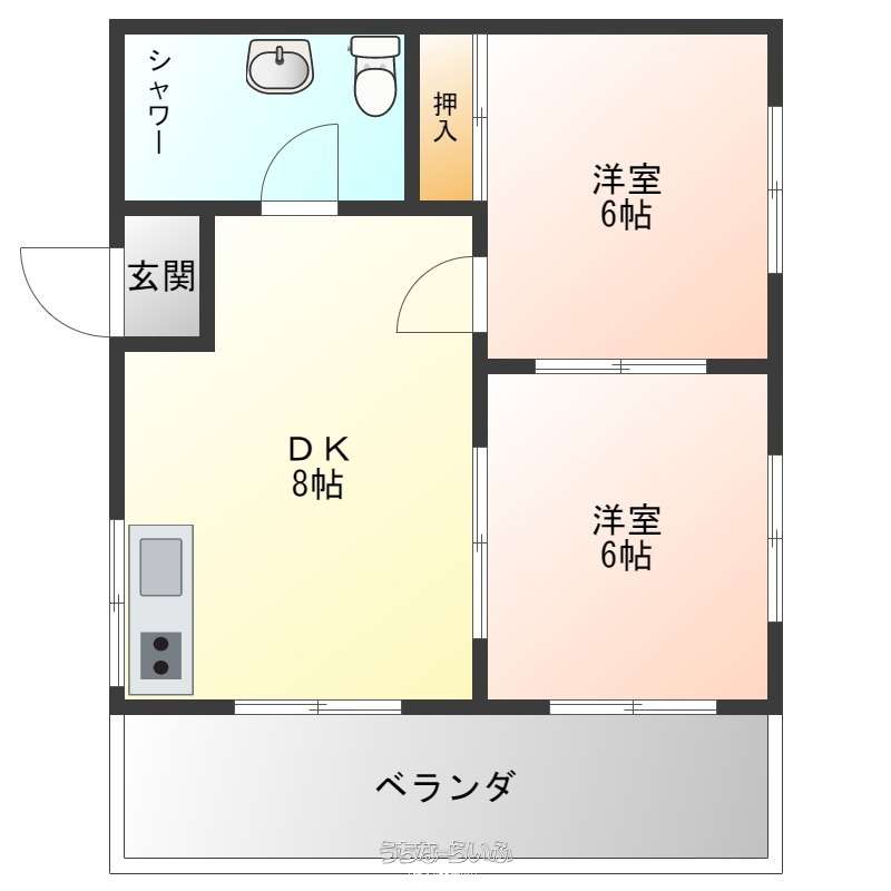 | 間取り | 2DK ( 洋6 洋6 DK8 ※ベランダ有り) | ||
