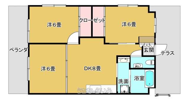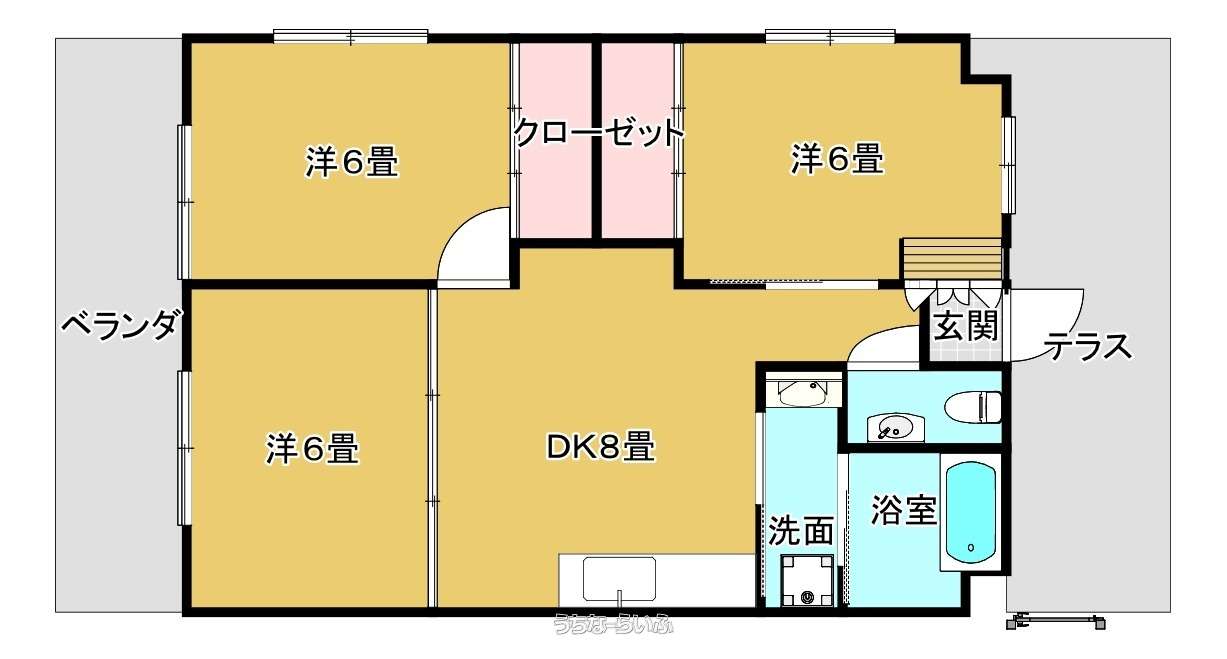 | 間取り | 3DK ( 洋6 洋6 洋6 DK8.2) | ||