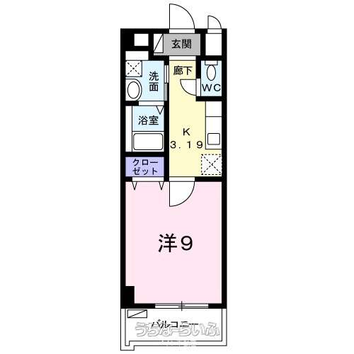 | 間取り | 1K ( 洋9 K3.1 ※開口:南西) | ||
