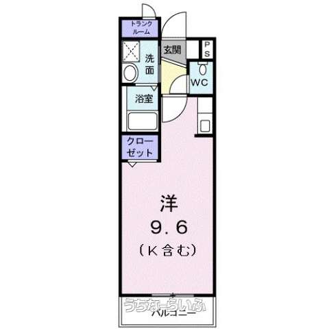 | 間取り | 1ルーム ( 洋9.6 ※開口:北) | ||