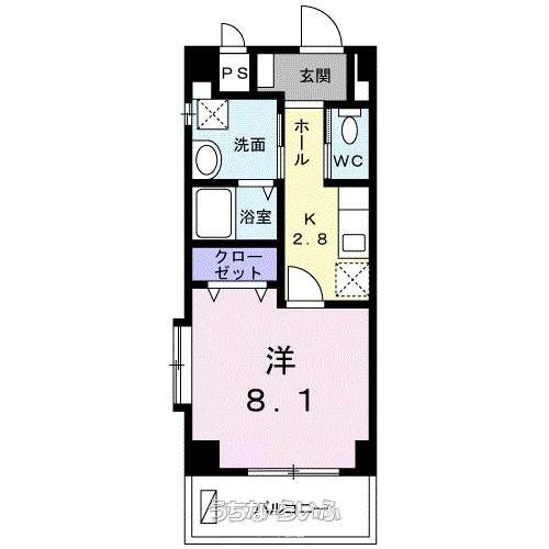 | 間取り | 1K ( 洋8.1 K2.8 ※開口:北東) | ||