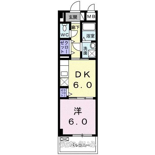 | 間取り | 1DK ( 洋6 DK6 ※開口:南西) | ||