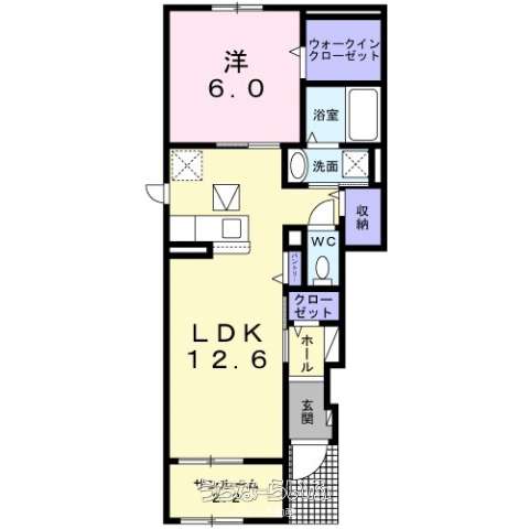 | 間取り | 1LDK ( 洋6 LDK12.6 ※開口:南東) | ||