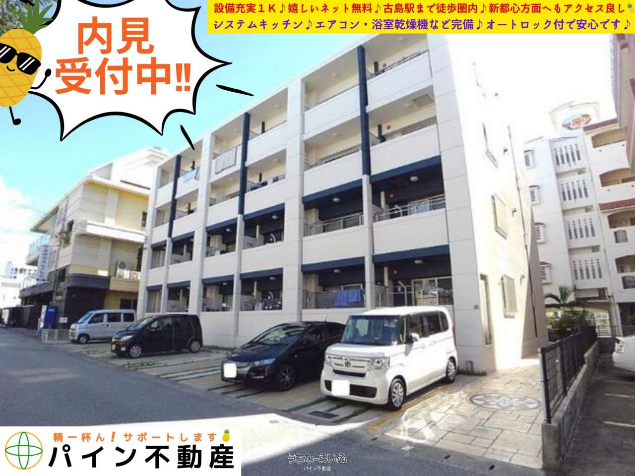 ✨内見受付中✨《古島駅まで徒歩圏内🍍設備充実1K♪新都心へアクセス良し♪嬉しいネット無料♪システムキッチン♪エアコン・浴室乾燥機付き♪オートロック付で安心です♪》✨初期費用や毎月家賃をクレジット決済OK✨お得にポイントもたまります(◎^^◎)忙しく現地でのご案内が難しく、お時間が取れない方はリモートでのご案内も可能です♪不動産のご相談事は大小関わらずお気軽にお問合せください♪