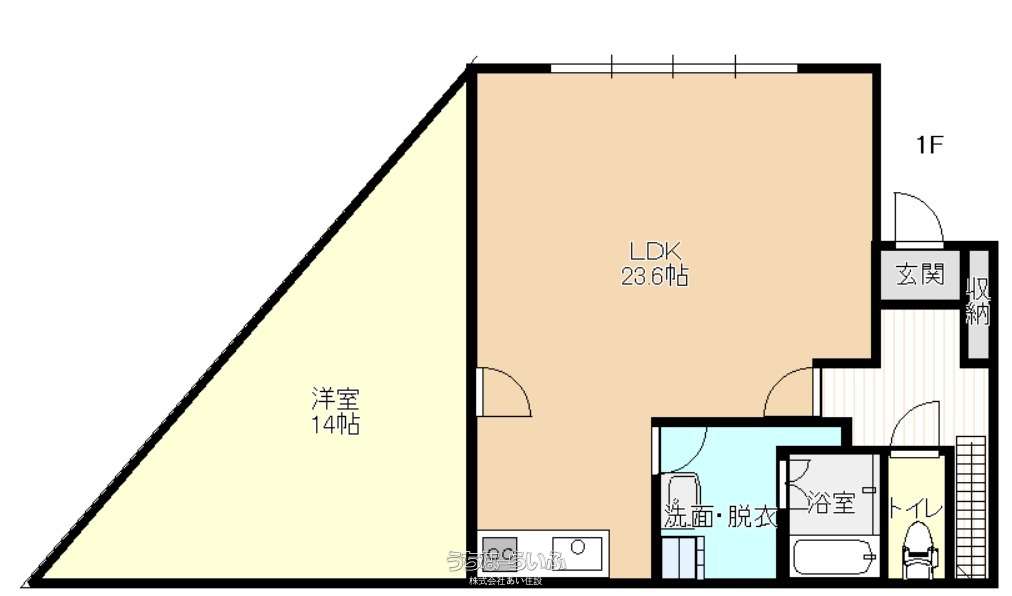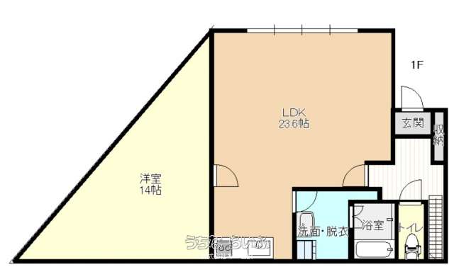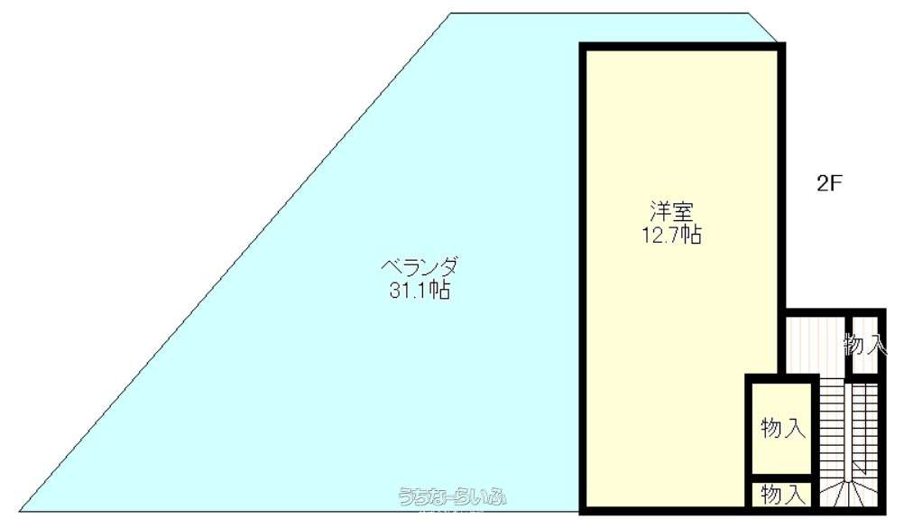 | 間取り | 2LDK ( 洋14 洋12.7 LDK23.6 ※1F・・・洋14帖 LDK23.6帖 / 2F・・・洋12.7帖 ベランダ31.1帖) | ||