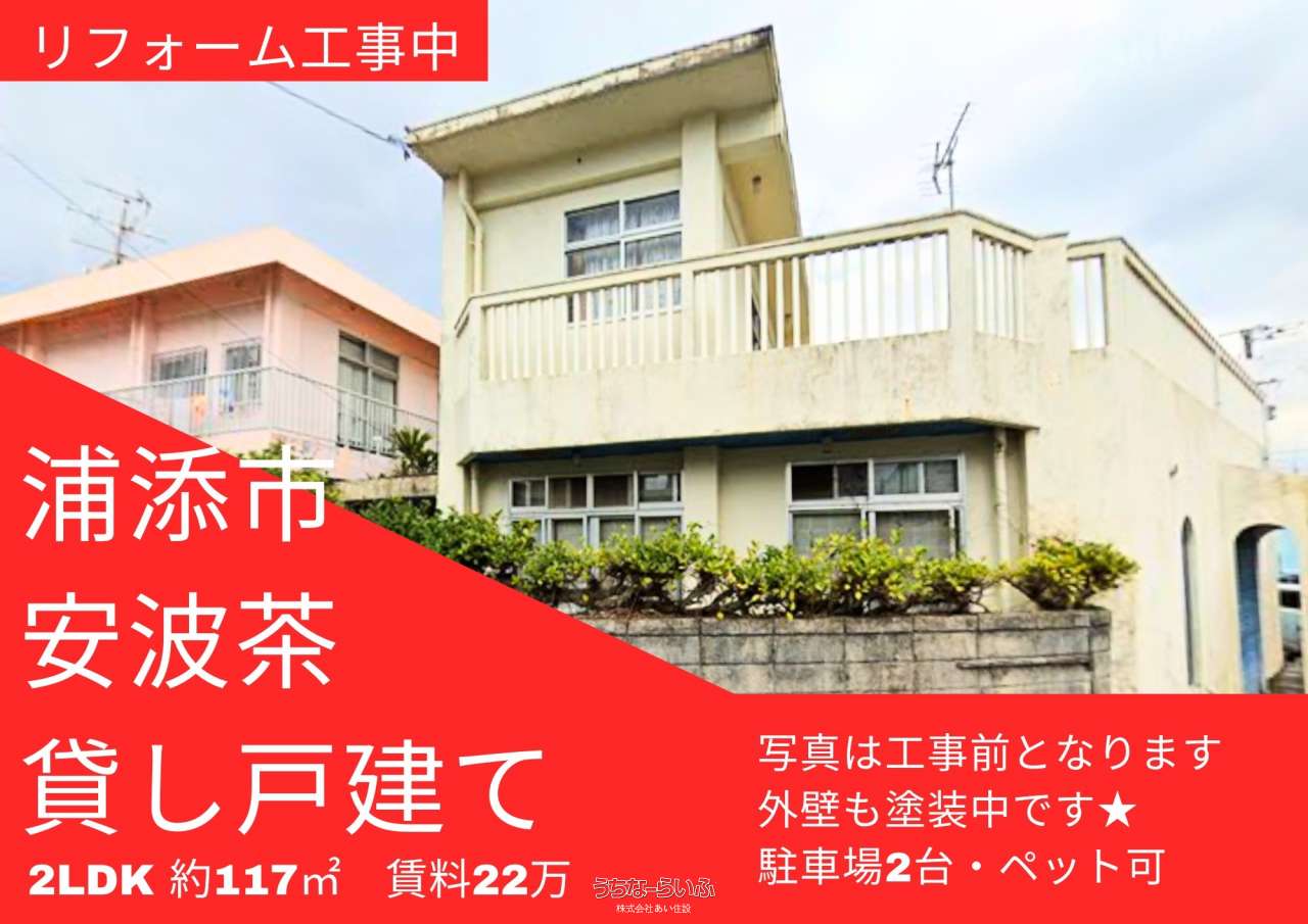 【フルリフォーム物件🏠✨】🏡戸建て2LDK 約117㎡🐶🐱ペット可/🚗駐車場2台OK📍浦添ニュータウン(那覇までアクセス良好)家族もペットも、のびのび暮らせます✨※現在リフォーム工事中。日程調整のうえ内覧可能です。初期費用は備考欄をご確認ください。