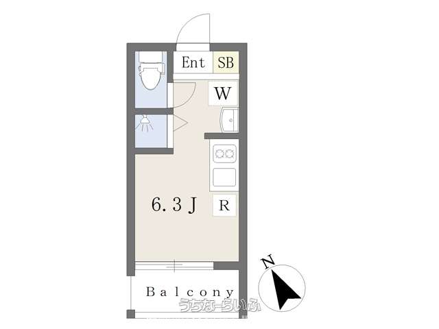 | 間取り | 1ルーム ( 洋6.3) | ||