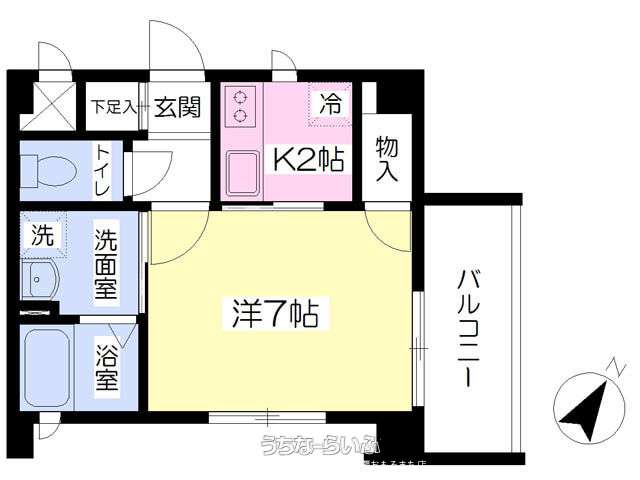 | 間取り | 1K ( 洋7 K2) | ||