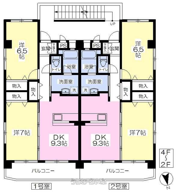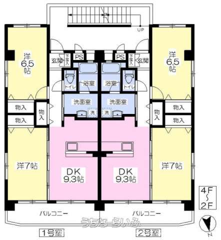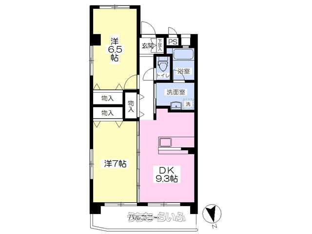 | 間取り | 2DK ( 洋7 洋6.5 DK9.3) | ||