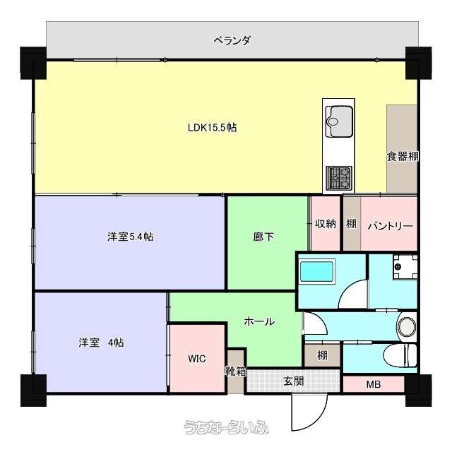 | 間取り | 2LDK ( 洋5.4 洋4 LDK15.5) | ||