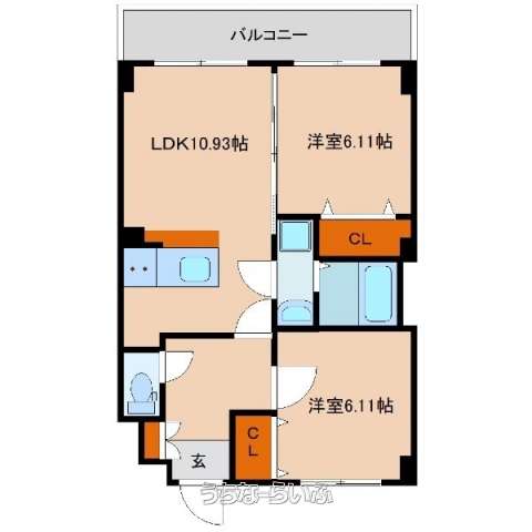 | 間取り | 2LDK ( 洋6.1 洋6.1 LDK10.9) | ||