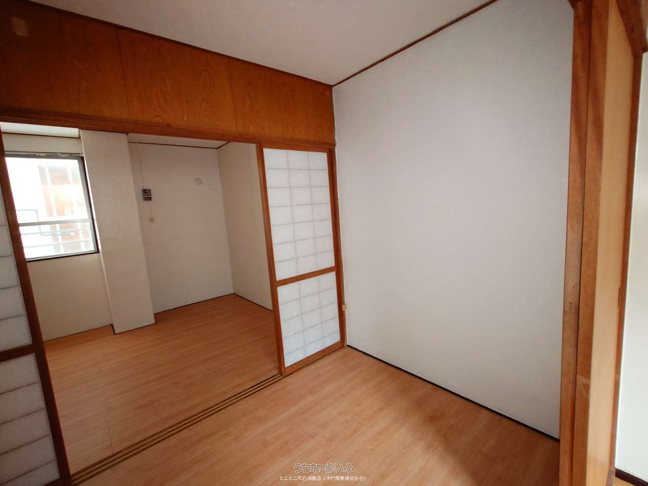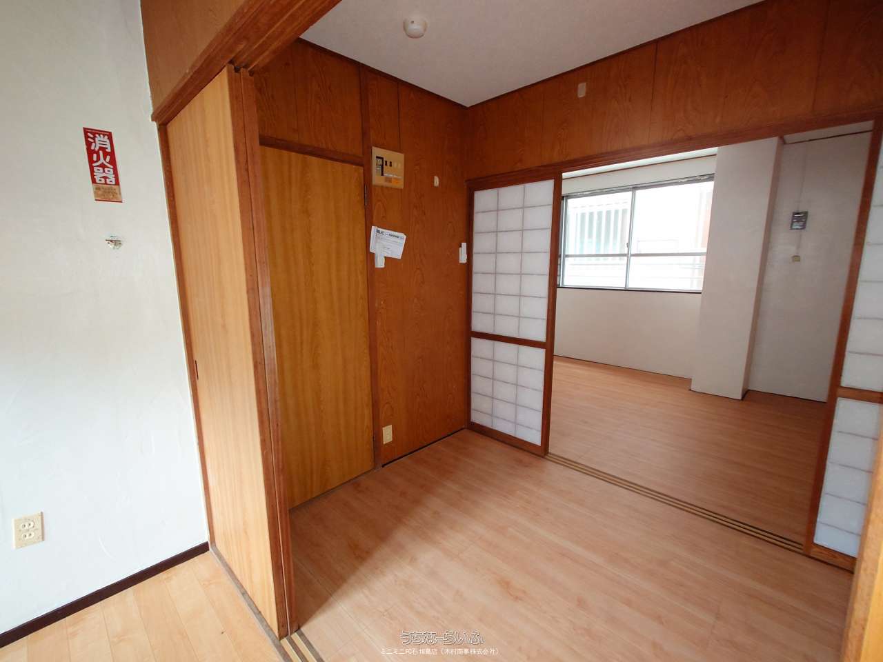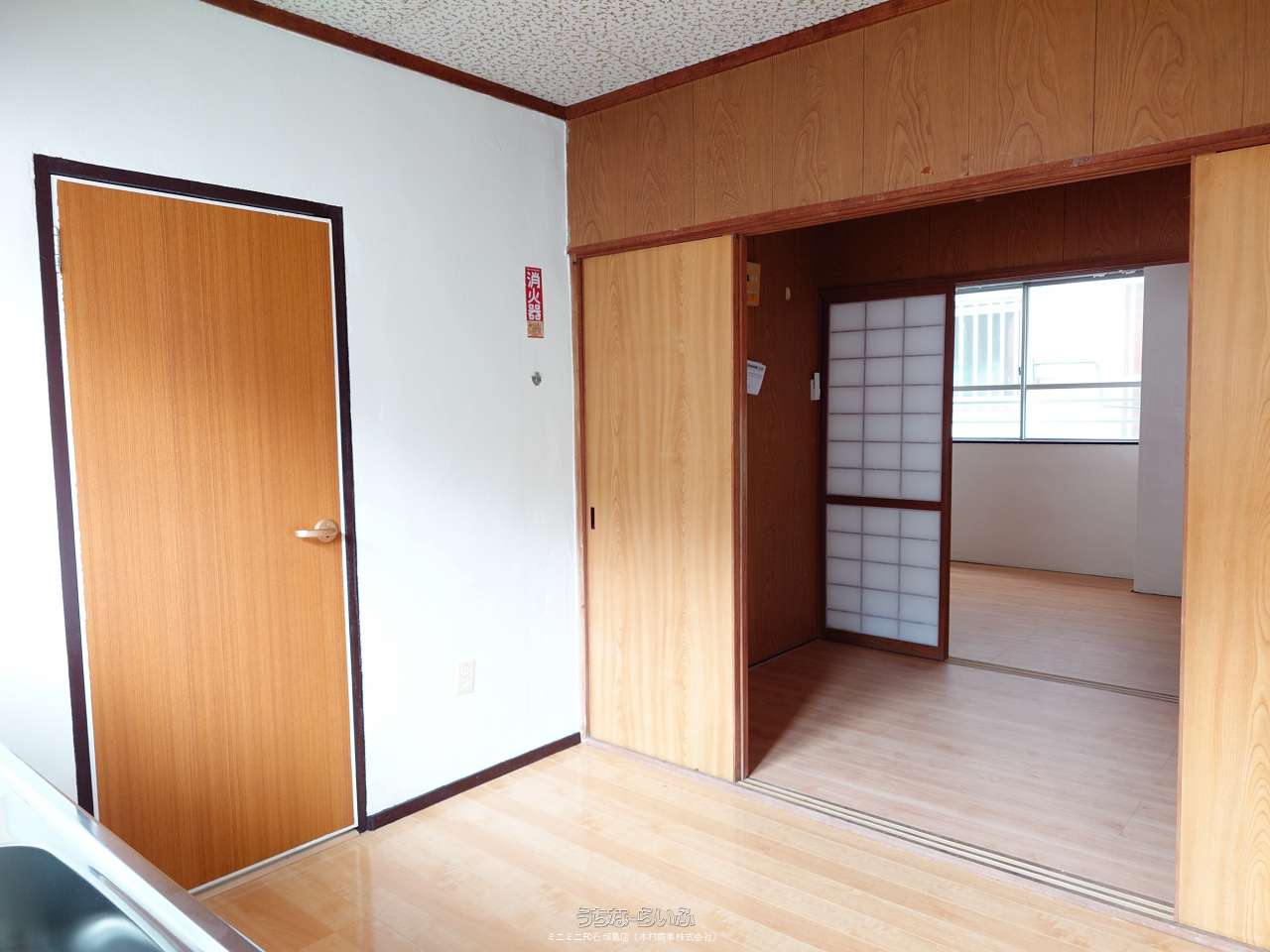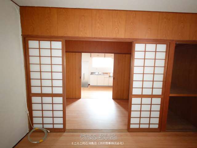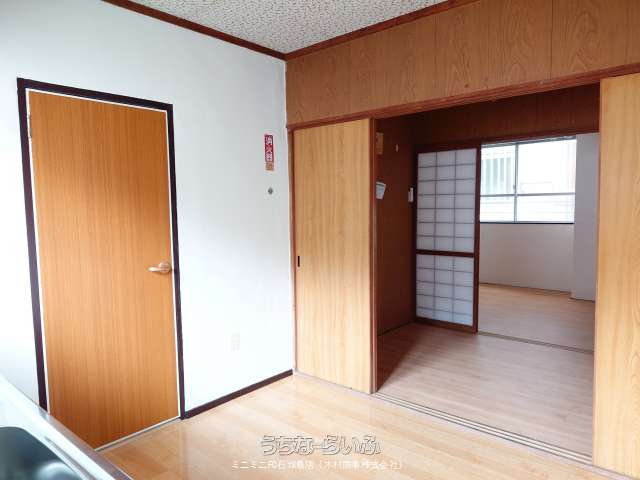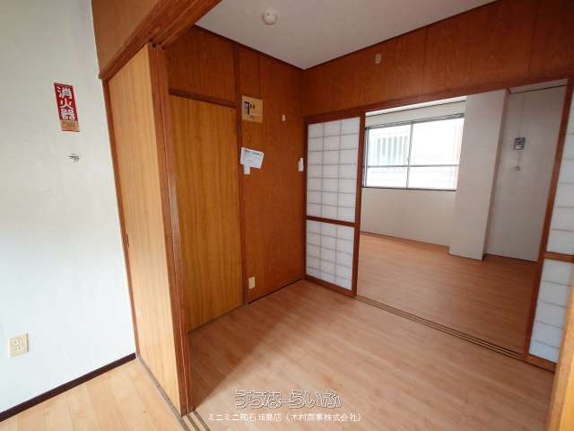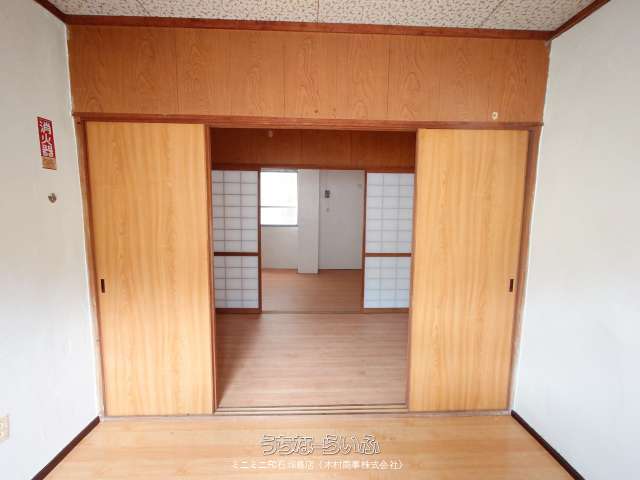 | 間取り | 2K ( 洋6 洋3 K3.5 ※ガスコンロはございません。洗濯機は外通路に置く事になります(給水、電源はあります)。) | ||