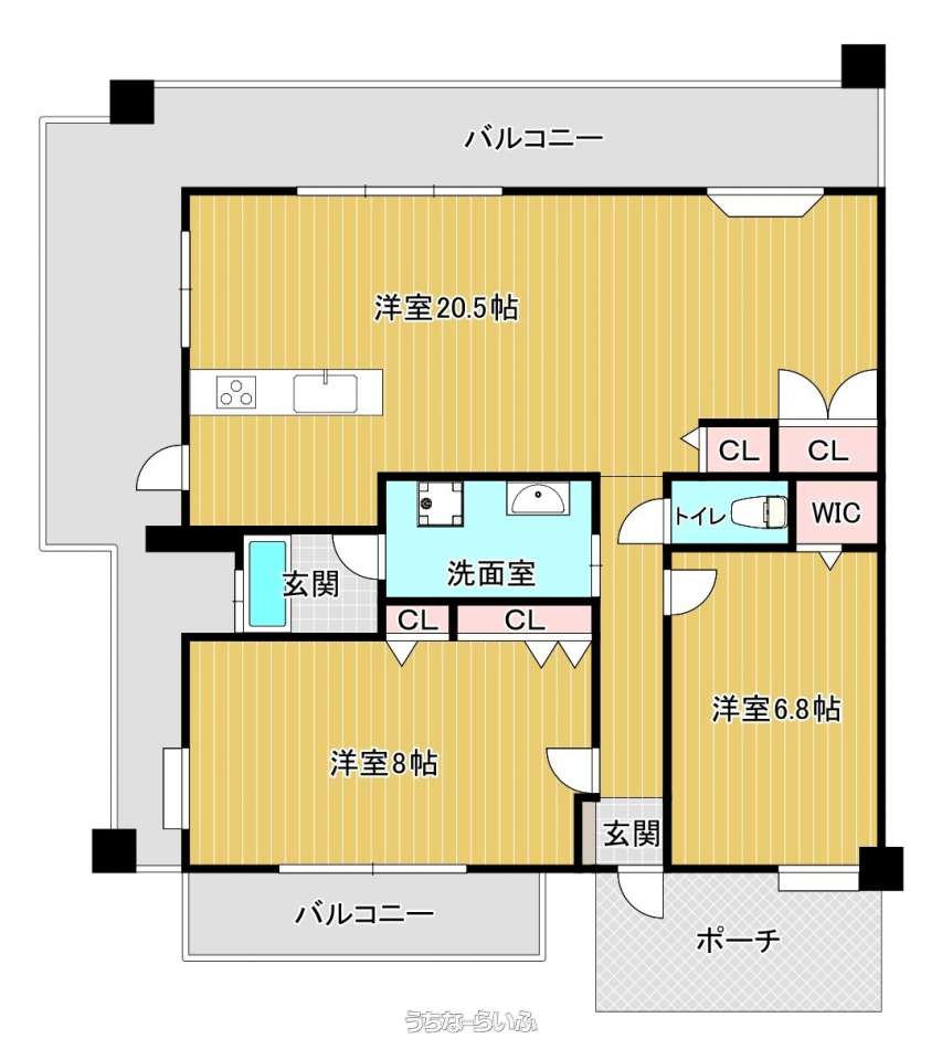 | 間取り | 2LDK ( 洋8 洋6.8 LDK20.7) | ||
