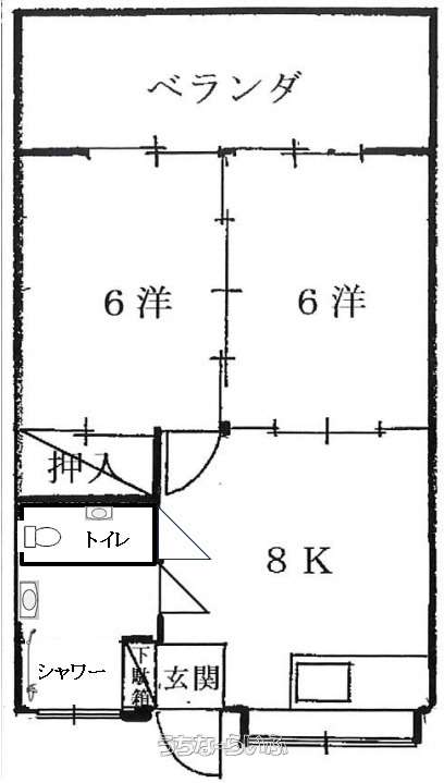 | 間取り | 2DK ( 洋6 洋6 DK8) | ||