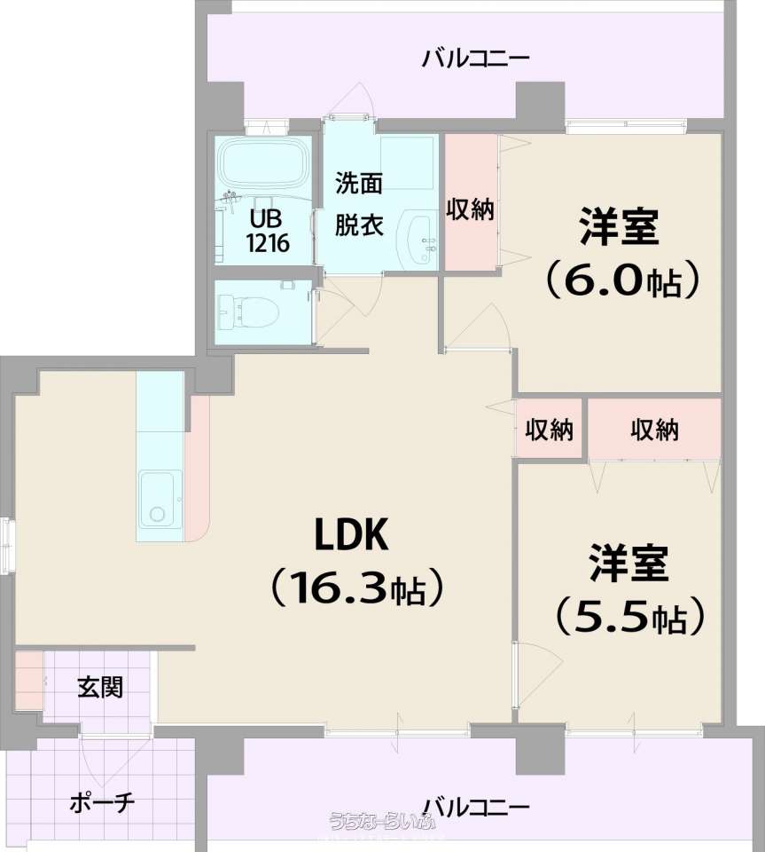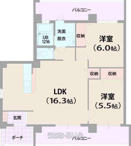 | 間取り | 2LDK ( 洋6 洋5.5 LDK16.3) | ||