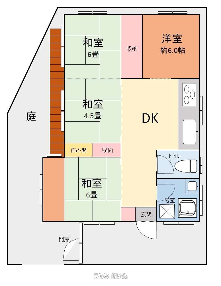 | 間取り | 4DK ( 洋6 和6 和6 和4.5 DK7) | ||