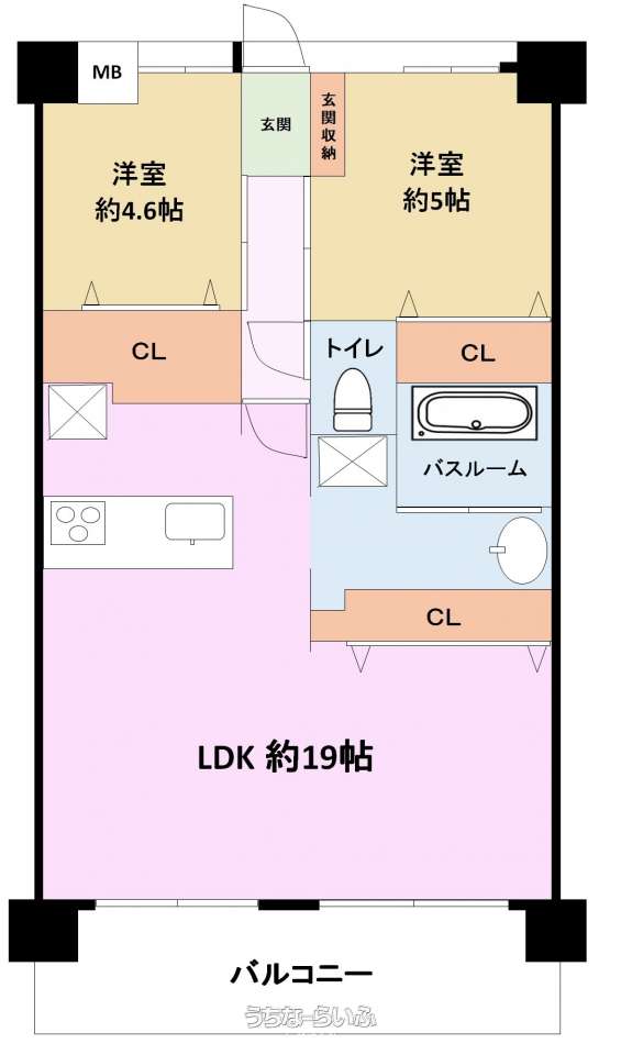 間取り | 2LDK ( 洋4.6 洋5 LDK19) | ||