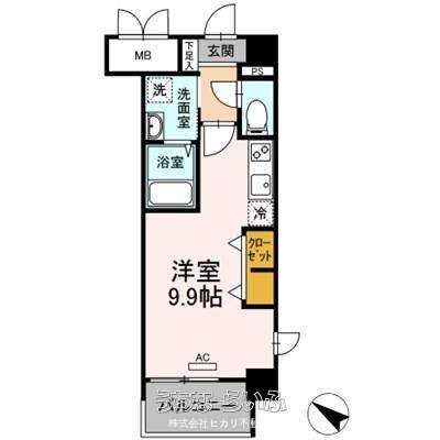 間取り | 1ルーム ( 洋9.9 ※南西) | ||