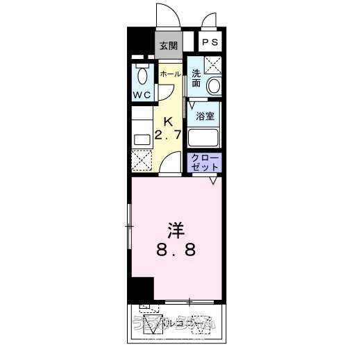 | 間取り | 1K ( 洋8.8 K2.7 ※南西) | ||