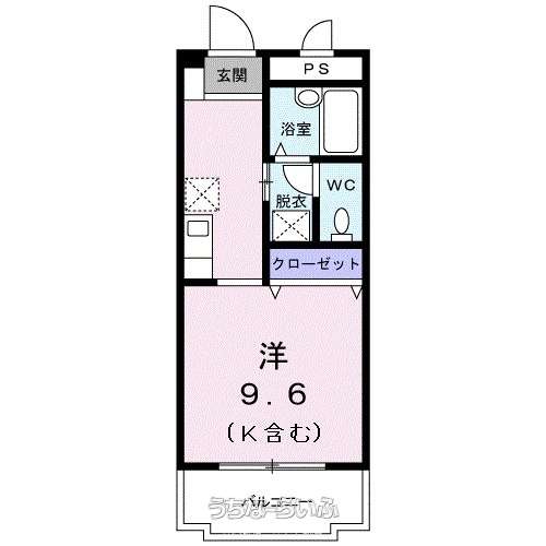 | 間取り | 1ルーム ( 洋9.6 ※北西) | ||