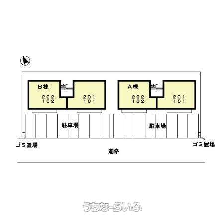 | 部屋番号 | 201号 | 所在階/階数 | 2階 (2階建) |