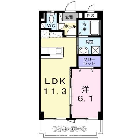 | 間取り | 1LDK ( 洋6.1 LDK11.3 ※南西 ) | ||