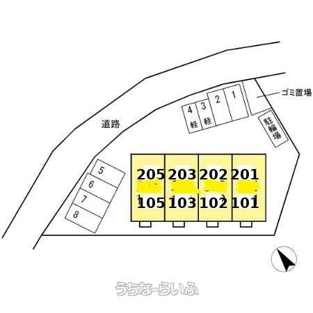| 部屋番号 | 105号 | 所在階/階数 | 1階 (2階建) |