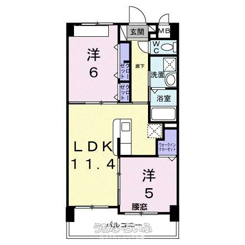 | 間取り | 2LDK ( 洋6 洋5 LDK11.4 ※北東) | ||