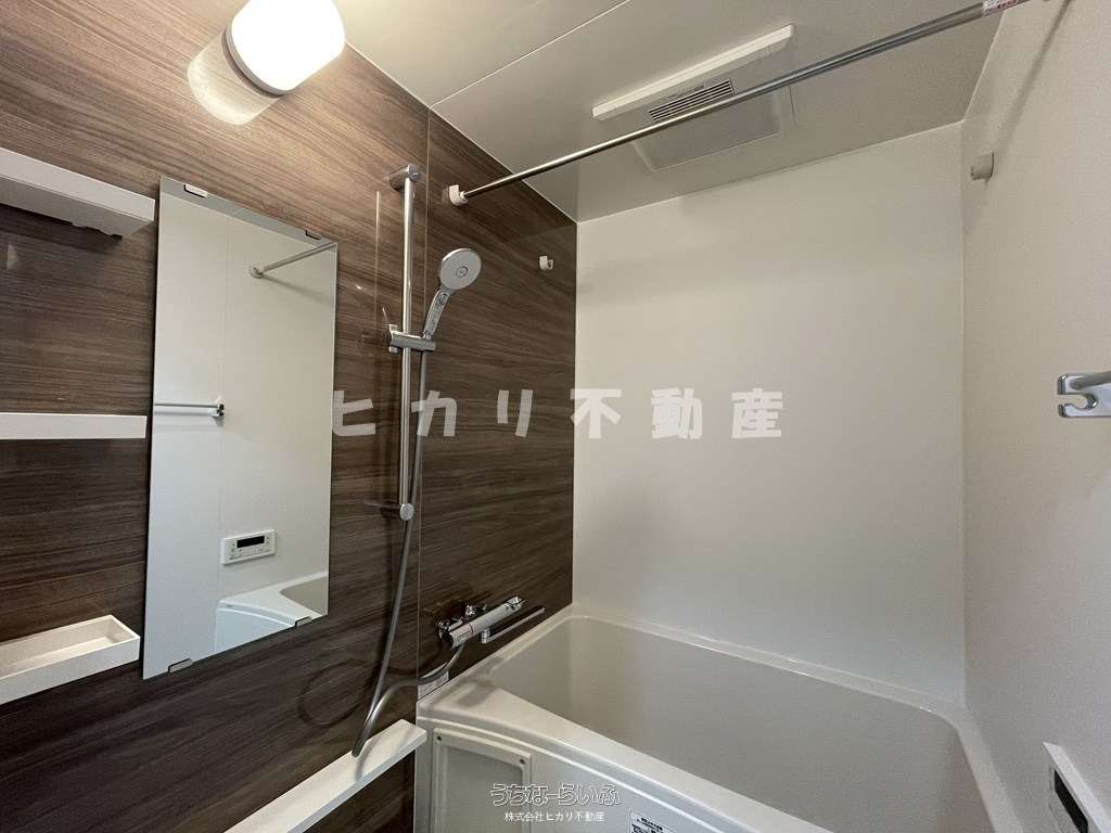 小型犬・猫2匹まで飼育OKのペット可物件。3口コンロ付システムキッチン、追焚き・浴室乾燥機、シャワー付洗面台、温水洗浄便座など水回り設備も充実しています。