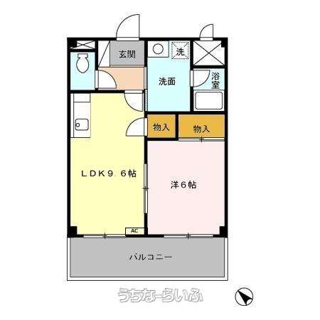 | 間取り | 1LDK ( 洋6 LDK9.6 ※南西) | ||