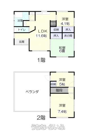 | 間取り | 4LDK ( 洋4.1 洋5 洋7.4 和6 LDK11.6) | ||