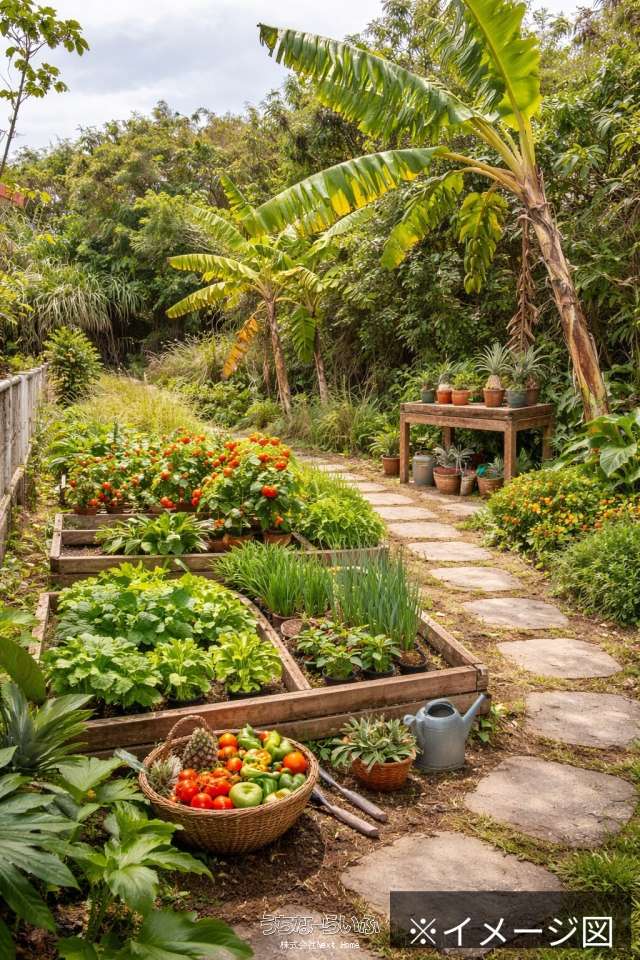 🌿自然に囲まれた静かな住環境に加え、敷地内には家庭菜園や南国植物を楽しめるスペースあり。