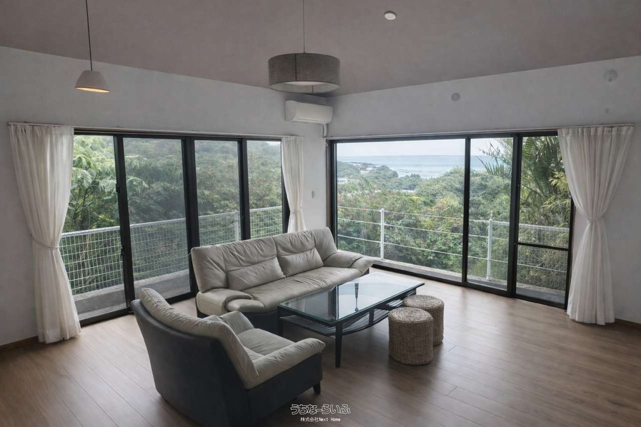 南城市知念具志堅の高台に位置し、窓一面に海と空が広がる開放的な住まい。日常がリゾートに変わる、贅沢なロケーションです。