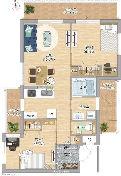 | 間取り | 2LDK ( 洋6.4 洋5.5 LDK15) | ||