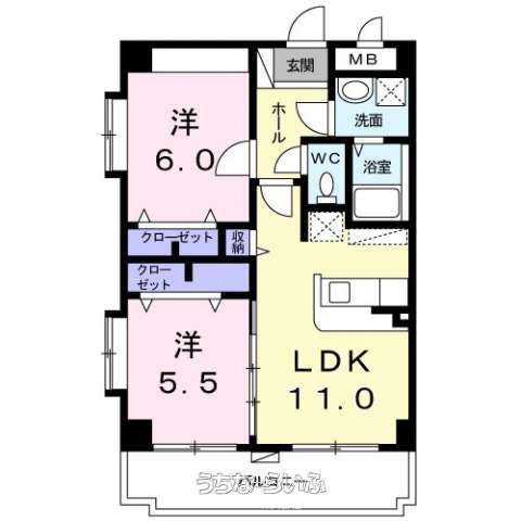| 間取り | 2LDK ( 洋6 洋5.5 LDK11) | ||