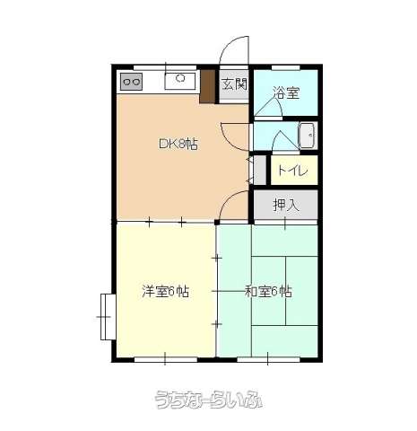 | 間取り | 2DK ( 洋6 和6 DK8) | ||