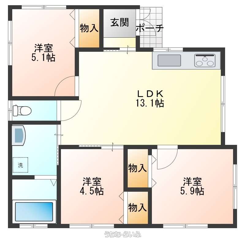 | 間取り | 3LDK ( 洋5.9 洋5.1 洋4.5 LDK13.1) | ||