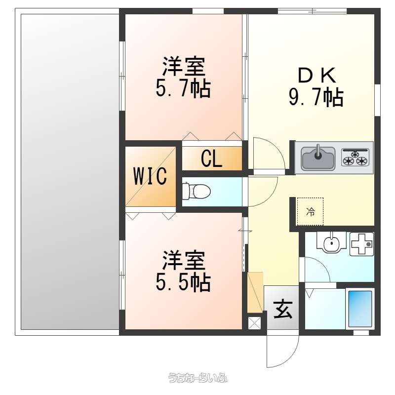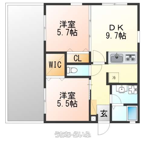 | 間取り | 2LDK ( 洋5.5 洋5.7 LDK9.7) | ||