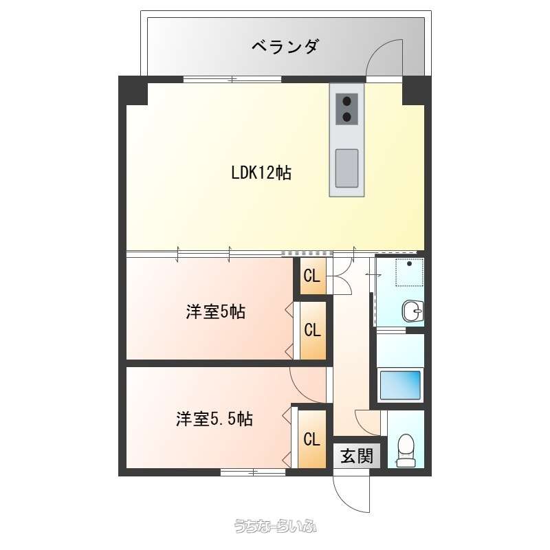 | 間取り | 2LDK ( 洋5.5 洋5 LDK12) | ||