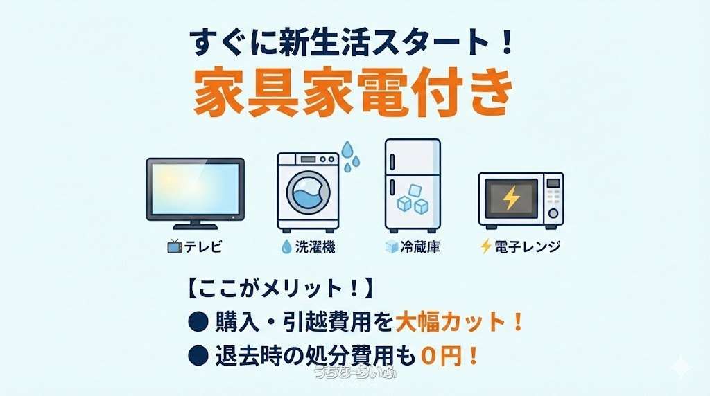 | 家具・家電 | 冷房 、 暖房 、 洗濯機 、 乾燥機 、 冷蔵庫 、 テレビ 、 家具/家電付き |