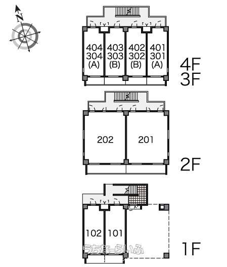 | 部屋番号 | 303号 | 所在階/階数 | 3階 (4階建) |