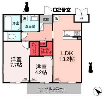 | 間取り | 2LDK ( 洋7.7 洋4.2 LDK13.2) | ||