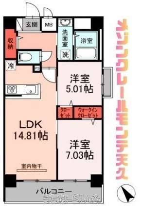 | 間取り | 2LDK ( 洋7.03 洋5.01 LDK14.81) | ||