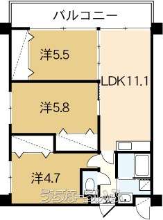 | 間取り | 3LDK ( 洋5.8 洋5.5 洋4.7 LDK11.1) | ||