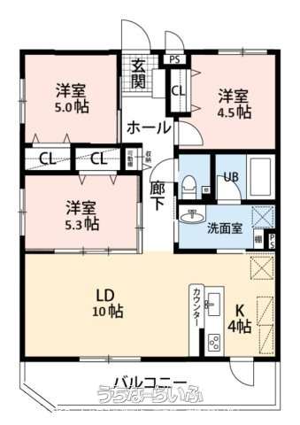 間取り | 3LDK ( 洋4.5 洋5 洋5.3 LDK14) | ||
