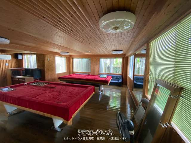 【恩納村に3階建ての大型戸建て物件募集中!】内覧可能ですよ~☆彡駐車場は3台無料♪徒歩5分の宇加地公園で海も楽しめます☆1階にはビリヤード台もあり複数人で遊べますね♪バス・トイレは2か所あり使い分け◎