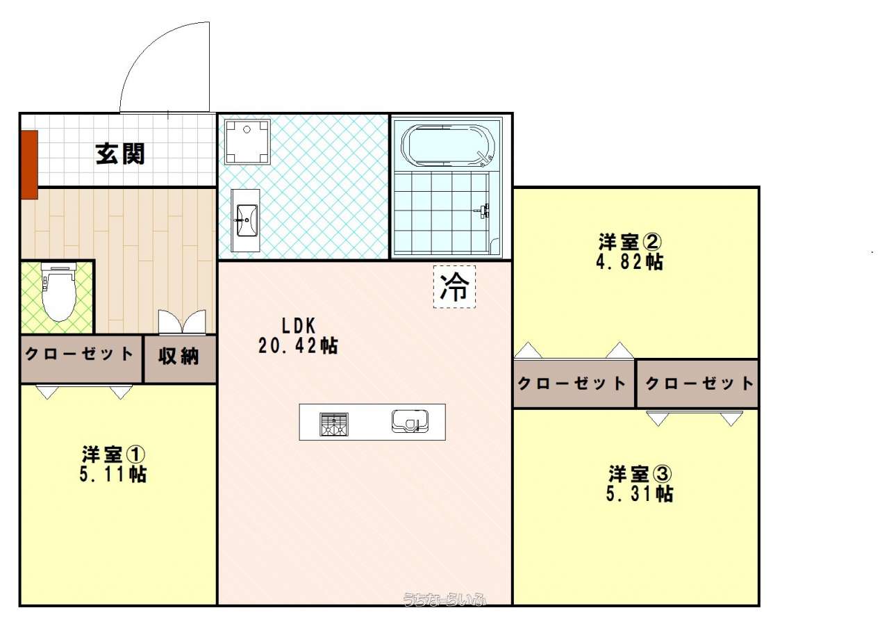 | 間取り | 3LDK ( 洋5.1 洋4.8 洋5.3 LDK20.4) | ||