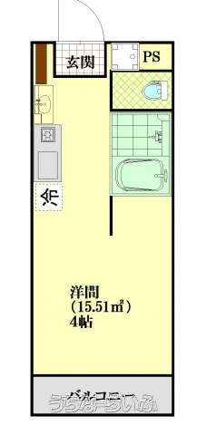 | 間取り | 1ルーム ( 洋4) | ||