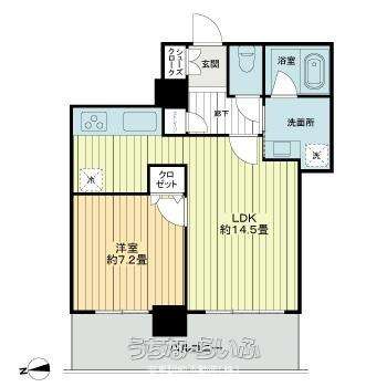 | 間取り | 1LDK ( 洋7.2 LDK14.5 ※オートロック・エレベーター・宅配ボックス・システムキッチン・IHクッキングヒーター・浴室乾燥機・温水洗浄便座・全室照明付き☆彡) | ||