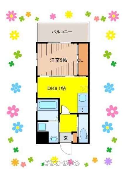 | 間取り | 1DK ( 洋5 DK6.1 ※オートロック・ネット無料・システムキッチン ・洗髪洗面化粧台 ・ 温水洗浄便座・ガス衣類乾燥機☆彡) | ||
